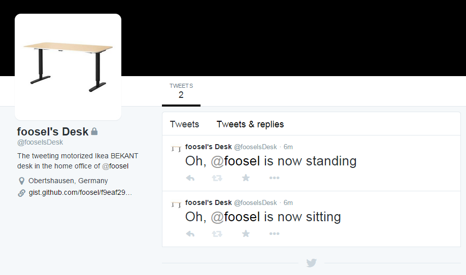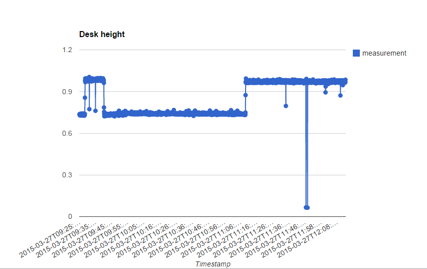 Together with some mqttwarn magic my desk can now tweet and publish the current measurements to a Google Spreadsheet where I can plot it ;)
