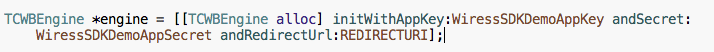 メソッド定義- initWithAppKey:andSecret:andRedirectUrl初期化する時に、3つのパラメータが必要です。