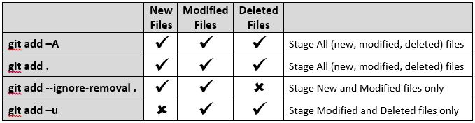 git add . vs git add -A vs git add -u vs git commit -a vs git add --ignore-removal