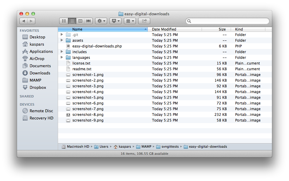 $ cd easy-digital-downloadsand fetch all the other commits from the SVN repo: