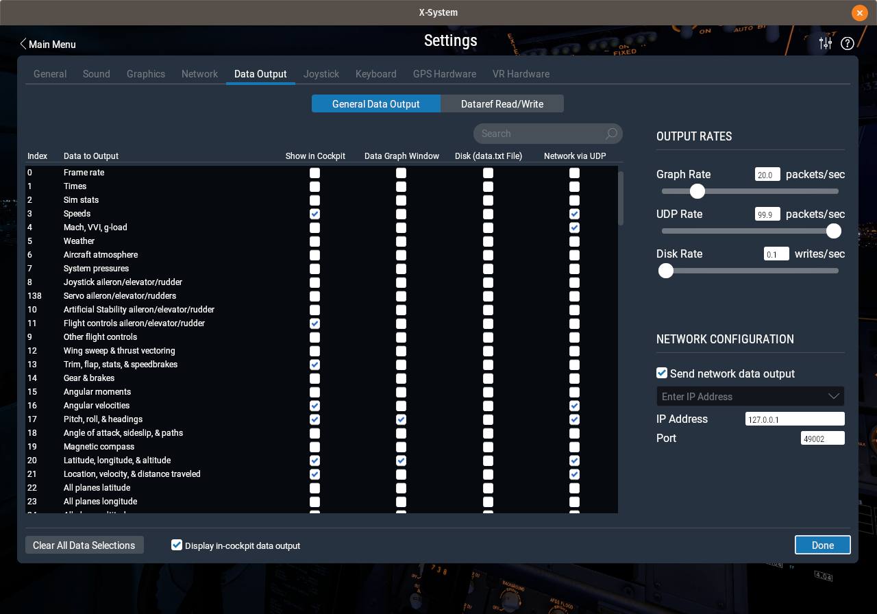 This data was available in X-Plane through messages #3, 16, 17, 20, and 21.