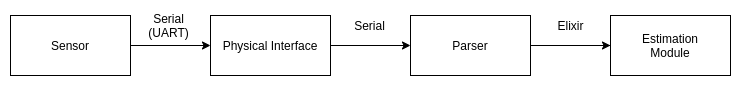The sensor is attached to physical interface, which receives its serial data, parses it, and then sends an Elixir message to theEstimation module. In order to fully simulator a sensor, I would need to get the data from X-Plane to travel this full path (and like I said, eventually we will). But before we do all that work, wouldn't it be nice to see if this whole X-Plane thing will even do what we want? Let's just go straight from X-Plane to Estimation like this:
