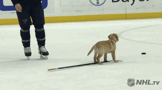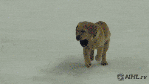 Now somewhere out in the grass lies a giant red circle. Our camera has been equipped with a clever algorithm to identify this red circle and tell the aircraft to orbit around it. You know what's cool about game engines? The pixels are perfect. So it really only takes like 4 lines of OpenCV code to find the circle. The hardest part is calculating the distance from the aircraft to the circle (which I don't think I got exactly right, so it's a little twitchy). But once the circle has been found, the aircraft will continue to orbit as long as the camera continues to send commands, or until the GCS operator overrides the camera's permission to control the vehicle. In the future, the autopilot could also ignore a peripheral due to other circumstances, such as the need to land before the battery runs out, but that has yet to be implemented. Below is an illustration of the orbit that is added to the aircraft path planner, as well as a sped-up version of the object acquisition and subsequent orbit. After that is a dog playing hockey, because if you watch the airplane circling that dot for too long you're going to throw up.The object circling kinda looks like a record, right? Well good, because at this point I should be sounding like a broken one. The significance of all this is: