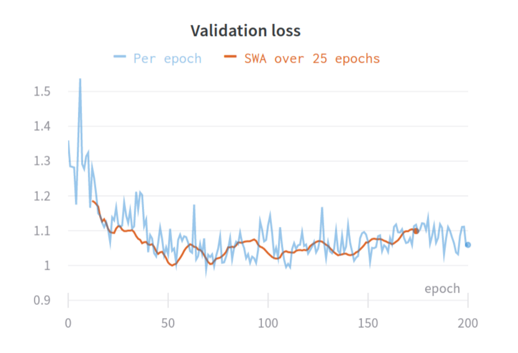 I saw small improvements for every experiment (AUC +/- 0.01 to 0.07). I really believe averaging weights is important if you have a small validation set. A small set will result in a noisy validation loss / metric curve and thus be hard to choose the right checkpoint to evaluate on the test set. Here is an example from an experiment with a very small validation set (not from this paper):