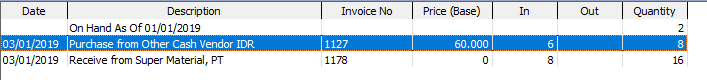 | values ('IN.001', '2016-01-10', 2, 30, 'Pembelian PURCH.001'); | |