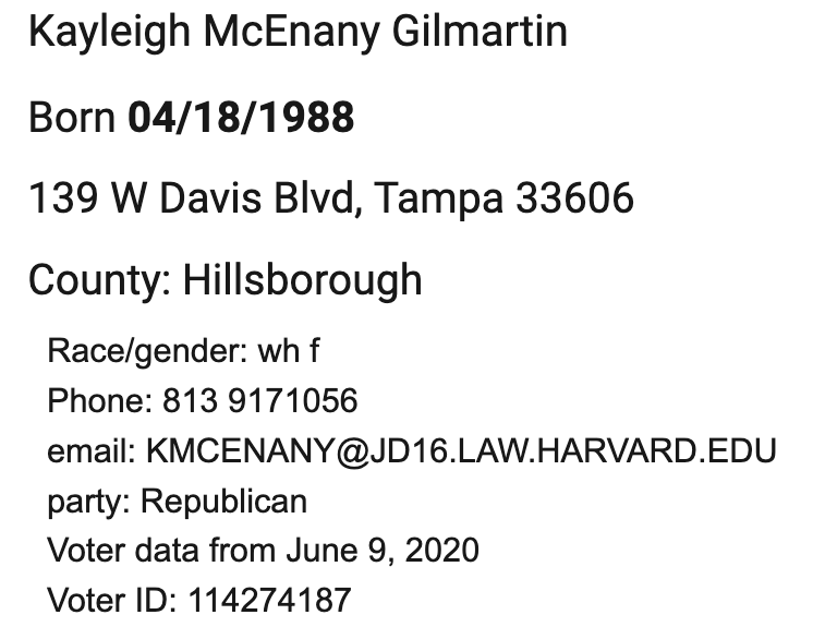 Florida voting history for Kayleigh McEnany Gilmartin, White House press secretary.