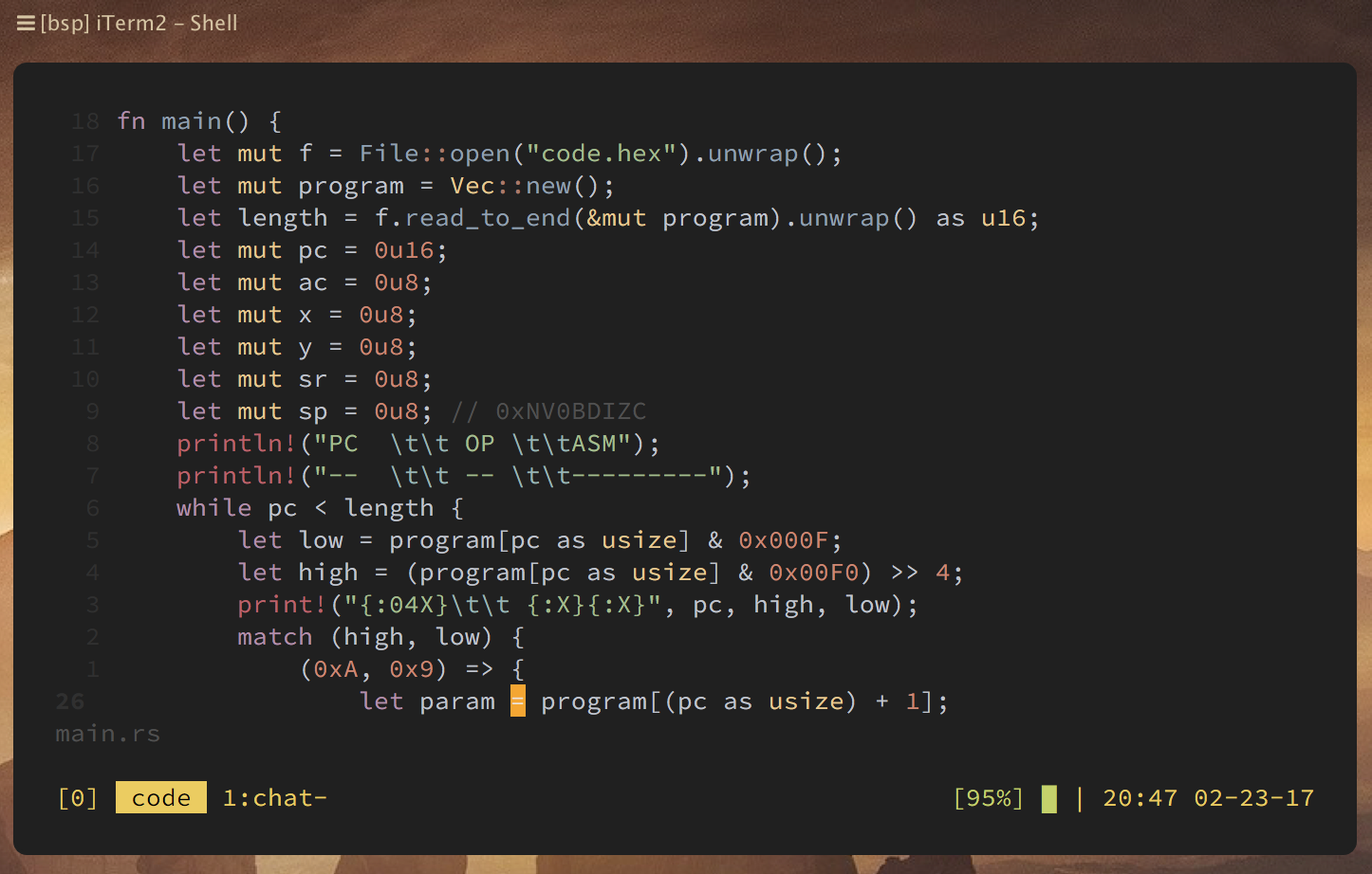 | execute "silent !/bin/sh ".g:base16_shell_path."/base16-ocean.".&background.".sh" | |
