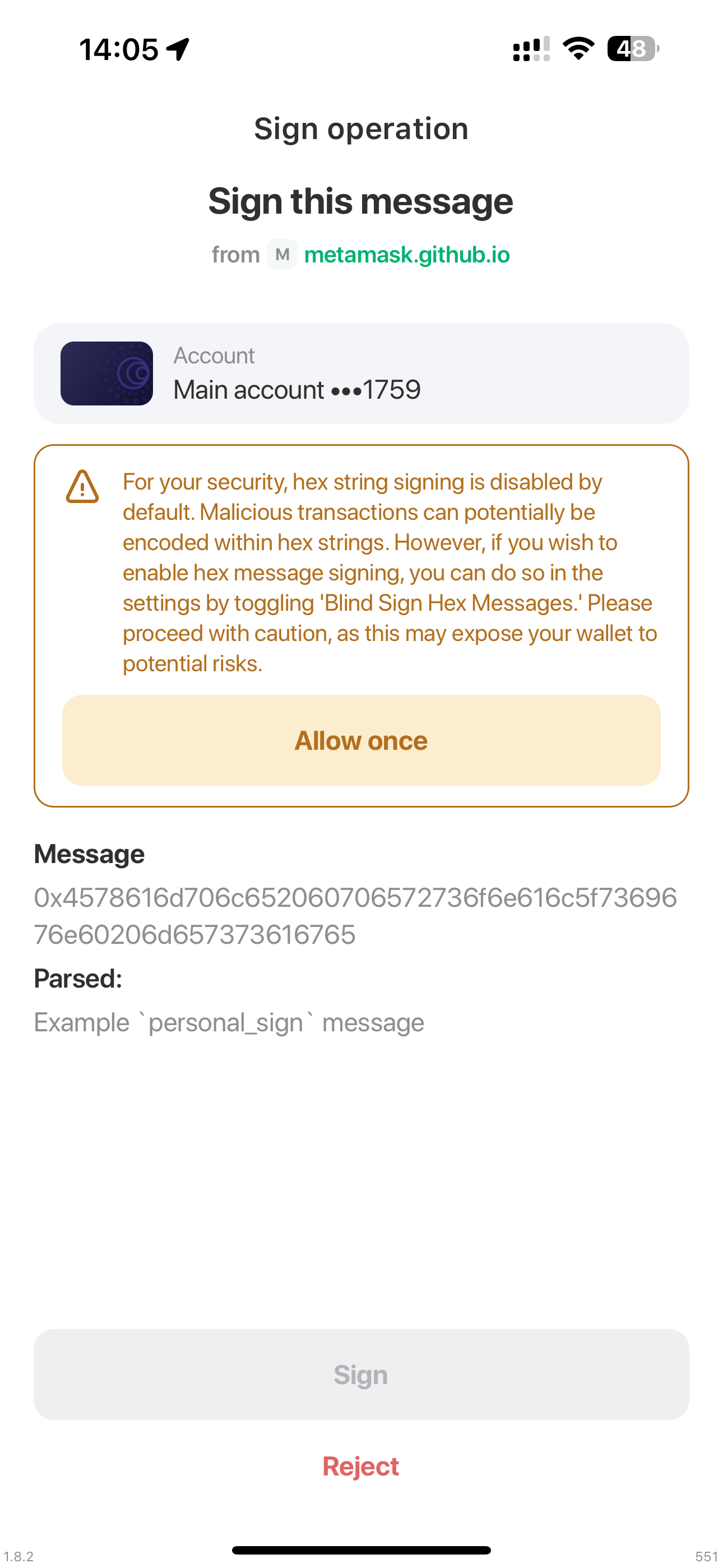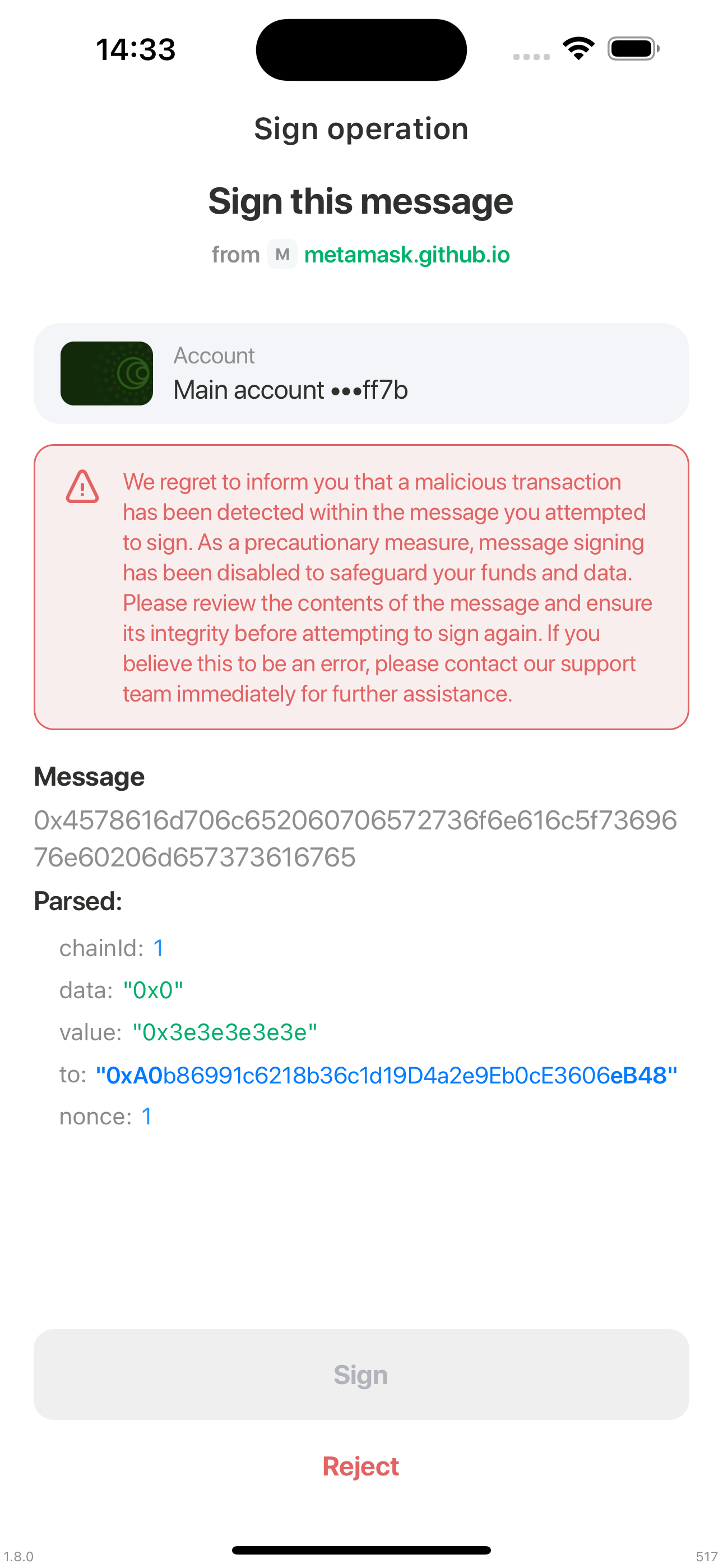 | message_is_valid === true if message is unknown hex strign, and malicious signature wasn't detected | message_is_valid === false | eth_signTypedData_v4 example |