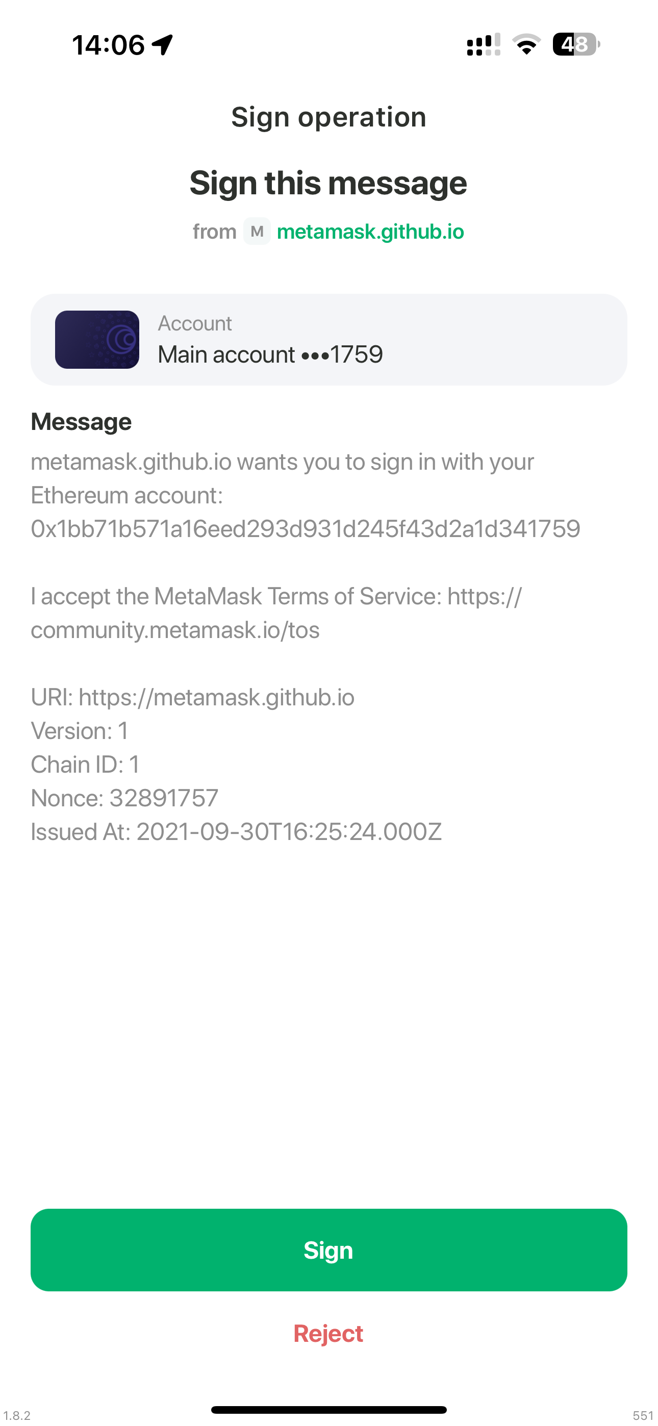 domain[1] - DAPP domain URL addressmessage_or_input[2] - string message from DAPP or smart contract input data (value can be0x0)- example: