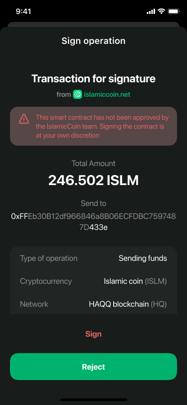 The HAQQ Network indexer verifyContract method allows validating transactions from DAPPs to detect malicious signatures in personal_sign and eth_sign methods. It filters non-whitelisted smart contract method calls and validates smart contract input data.