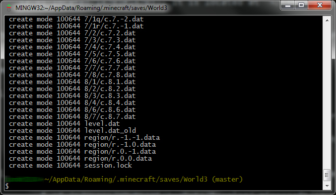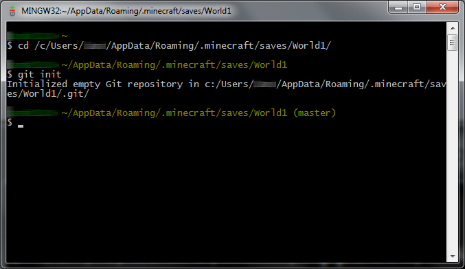 directorycd /c/Users/YOURNAME/AppData/Roaming/.minecraft/saves/World1