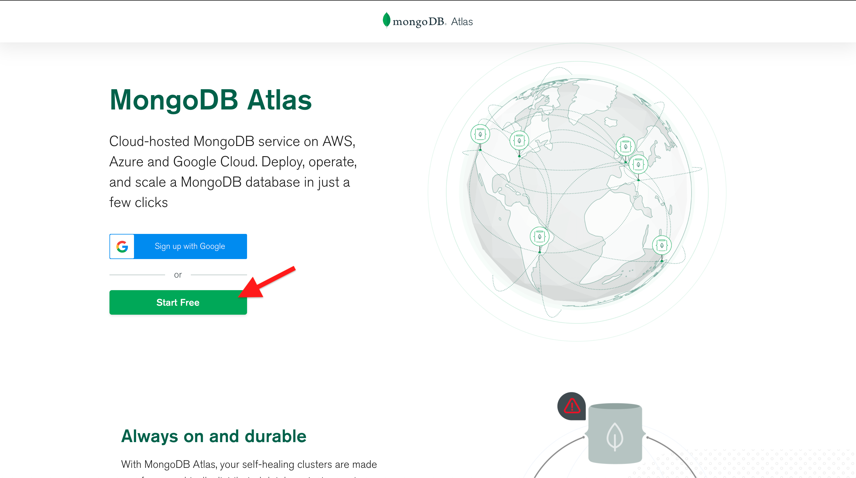 Sign Up for Mongo Atlas - enter the email, password, first name, last name