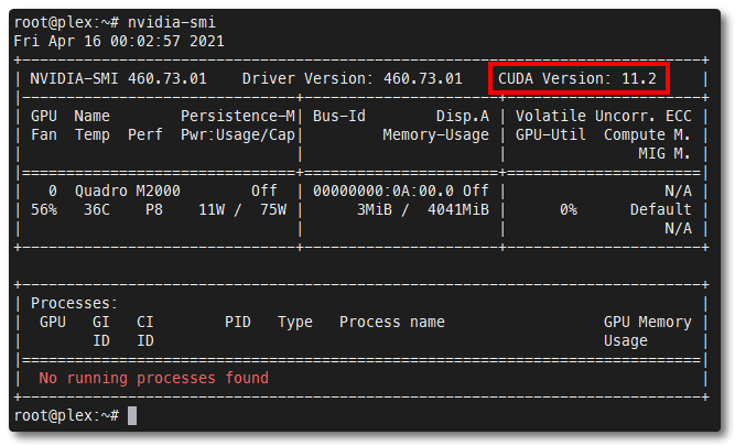 apt install nvidia-cuda-toolkit nvidia-cuda-devNote: Plex DOES NOT USE THE GPU until you install CUDA