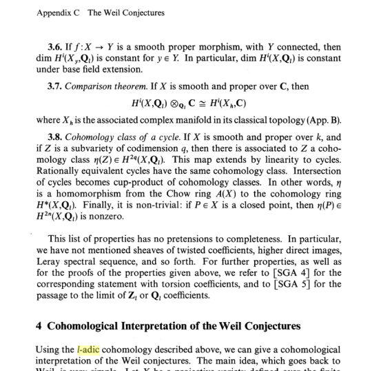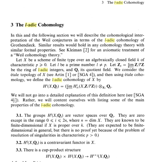 It’s impossible to get far in reading 20th-century mathematics without encountering the word cohomology. Cohomology & schemes are the subject of Hartshorne’s classic, where you can find out (Appendix C) that the Weil conjectures were resolved by defining a thing called l-adic cohomology.