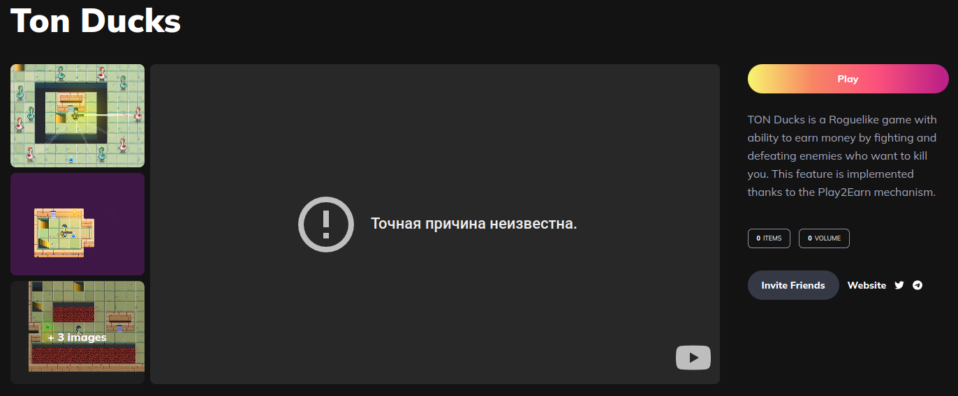 I noticed a post in the insider channel https://t.me/tonplayinsider/140 and decided to test this game. An insider made a review similar to the fact that this game is a blockbuster. After testing, I realized that the insider did not see adequate games. Urgently show the insider adequate games outside the TON Play galaxy :) Thanks