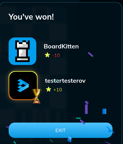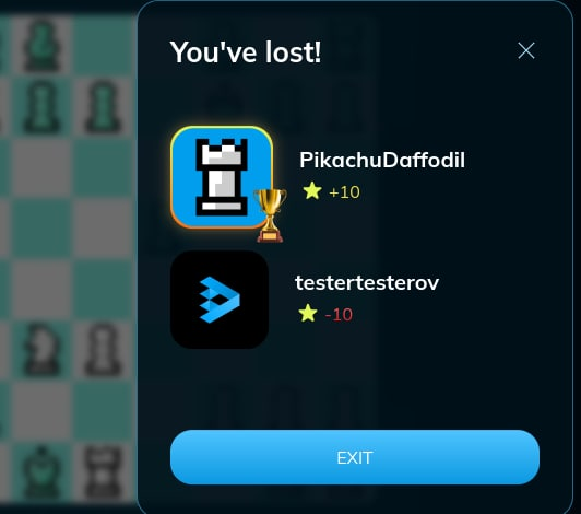 AI TON Chess began to analyze for a long time that it was checkmate. I already checkmate AI TON Chess, but the modal window with the rating calculation appears with a delay.