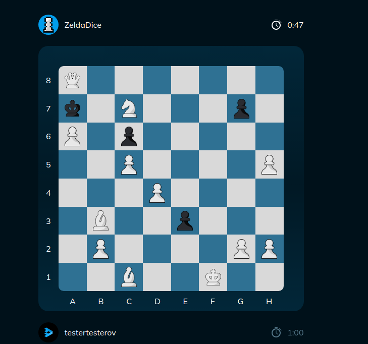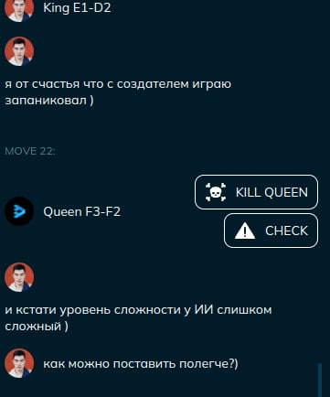- I like to checkmate or stalemate in chess (the game ends by itself). I wanted to feed the bot more chess pieces, but he ended the game. In chess, a situation is possible when it is impossible to checkmate if the opponent moves correctly (for example, a checkmate with two knights).