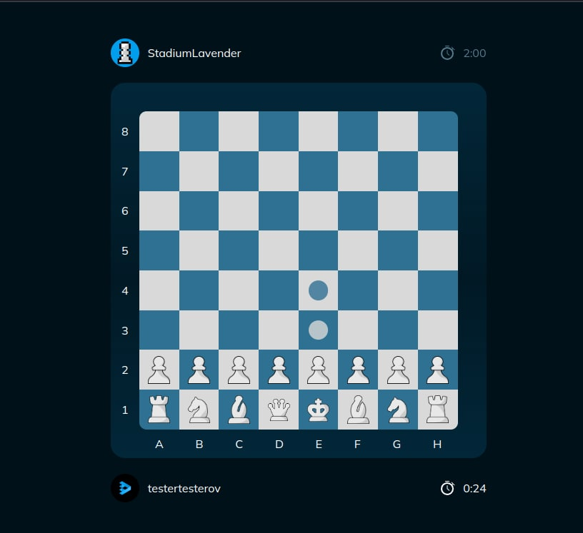 - Implement the possibility of throwing "dice" between games before the game. Perhaps this will help to avoid the constancy of the color of chess pieces for testertesterov. (it can be automated)