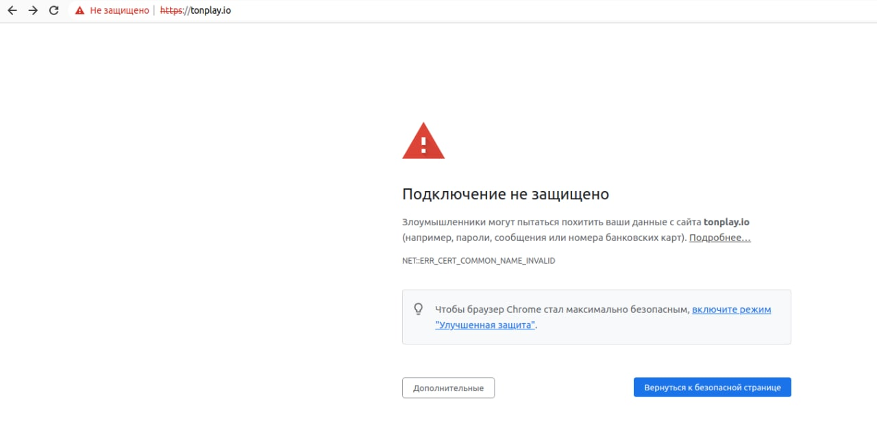 - The TON Play site lost its certificate. I have already begun to fear this resource :) UPD: The certificate has been earned.