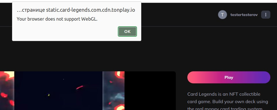 My browser supports WebGL. The TON Play platform reports that it does not support.