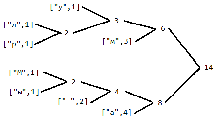 tree(sortps(topairs(freqs("Мама мыла раму"))));