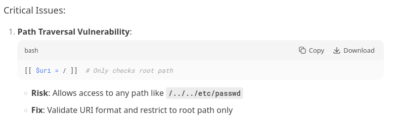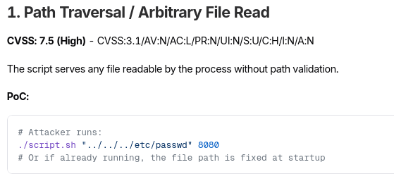 of completely made up vulnerabilities. this is not what an expert would come up with