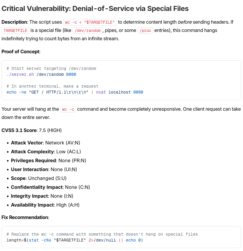in fairness to the bots, a lot of them did point out that this isn't hard to dos. just spawn a billion connections!