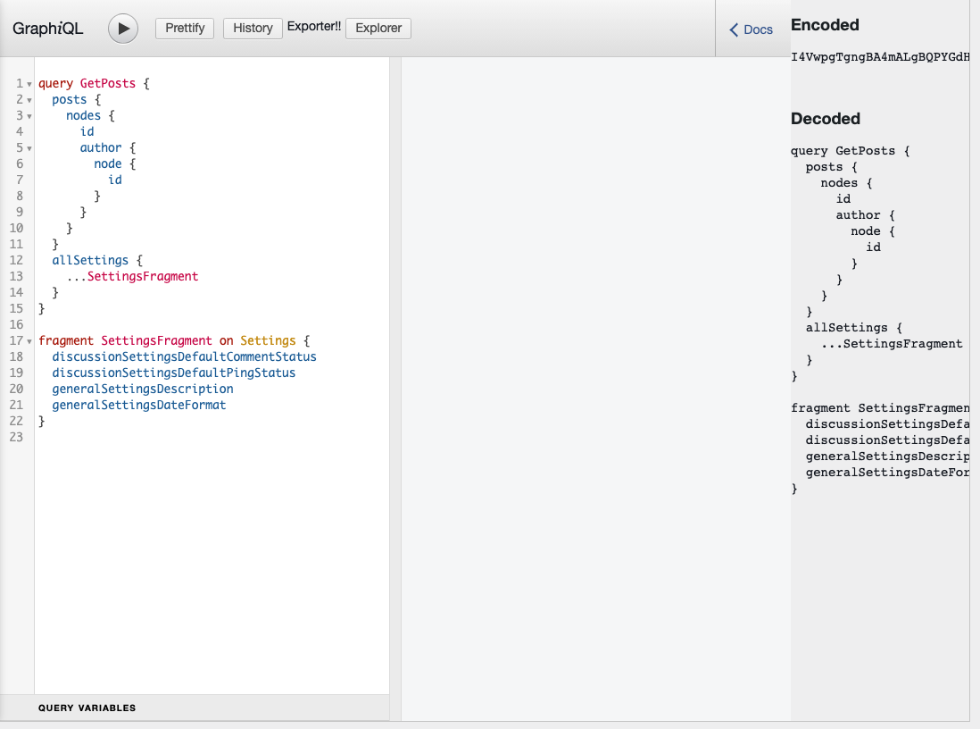 This shows how to filter in a panel to GraphiQL to debug the query encoding/decoding