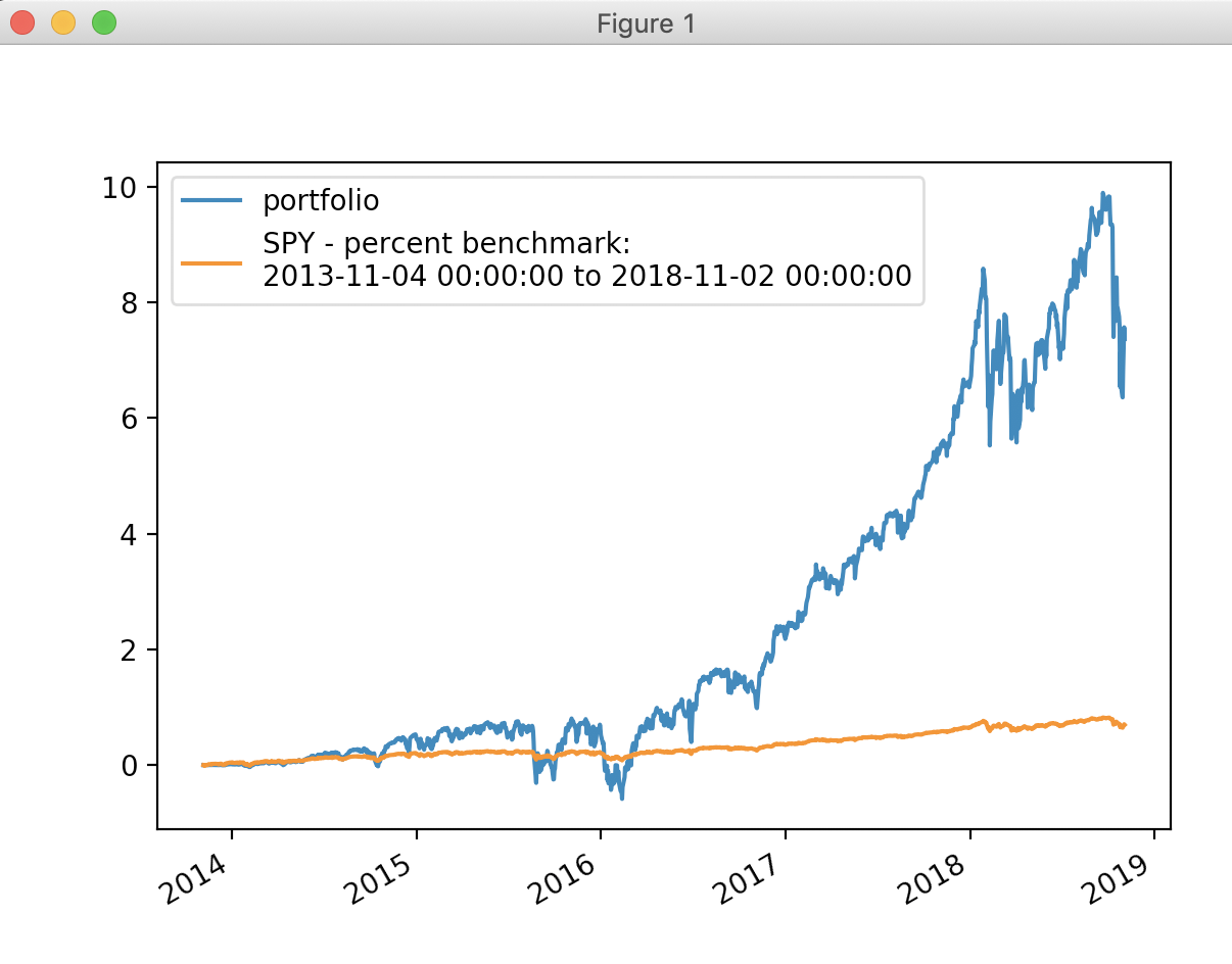 SPY - stock analysis engine with Quantopian zipline run_algorithm with portfolio and benchmark using matplotlib
