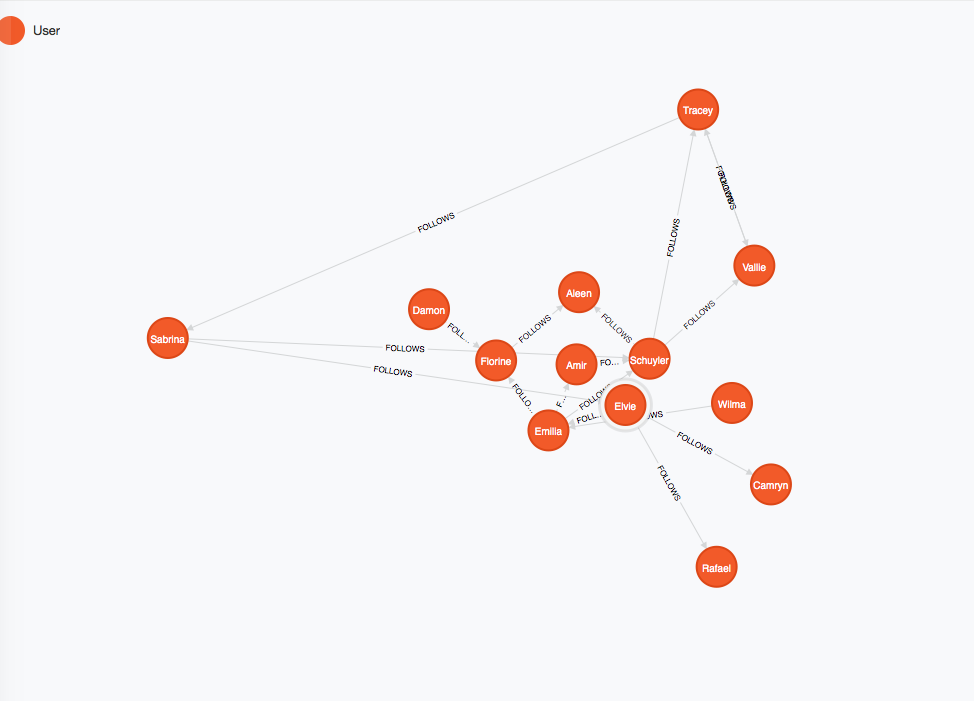 ->build();We're going to build a set of User nodes and FOLLOWS relationships incrementally. Then we'll be able to query friend-of-a-friend information to provide friendship suggestions.
