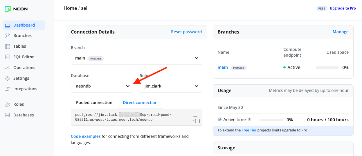 You get one free "project" which can contain multiple "branches" which can contain multiple databases. Name your project something like "sei" and stick with the default "main" branch.