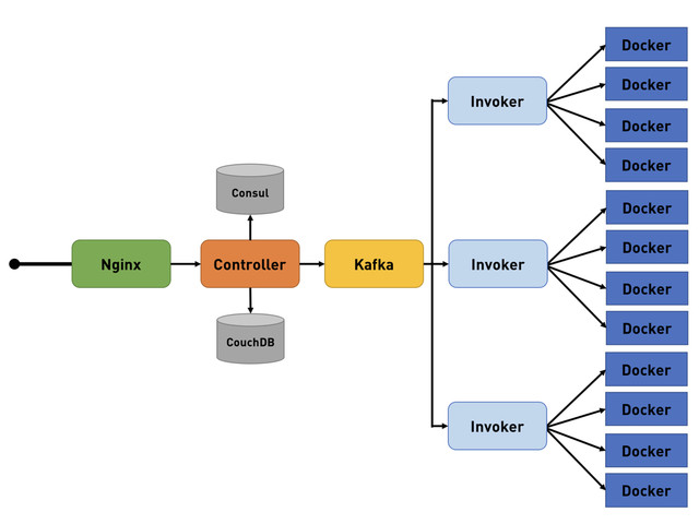 Invoker nodes deploys actions in isolated containers