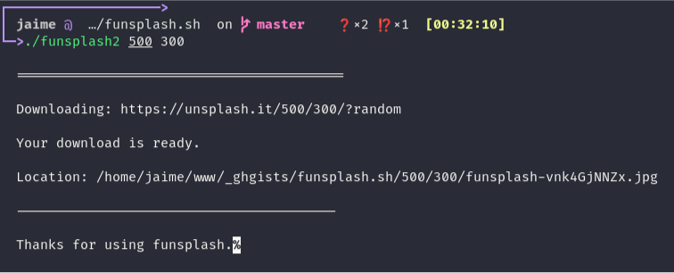 printf -- "\n Thanks for using funsplash." |
