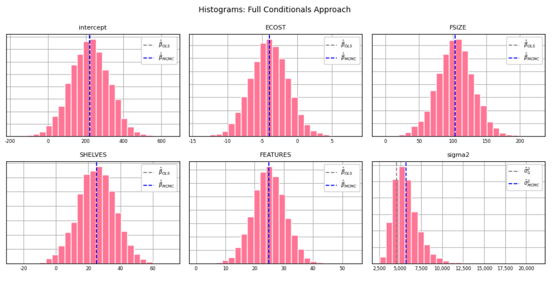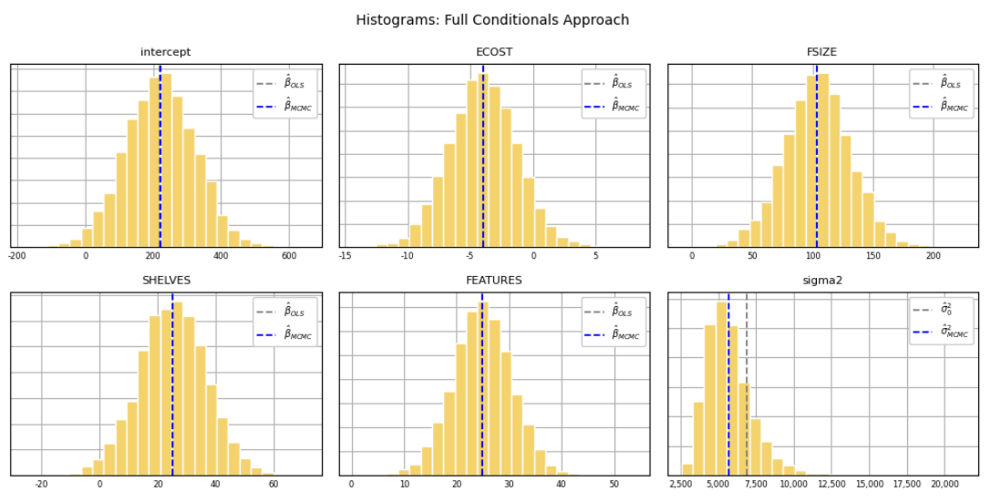 MCMC methods can be used to estimate linear regression models. In what follows, we derive the distributional forms and algorithms associated with two Gibbs sampling approaches: the full conditionals approach and the composition method.