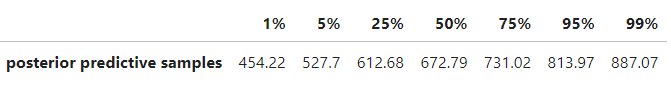 plt.show()Finally, a summary of posterior predictive percentiles: