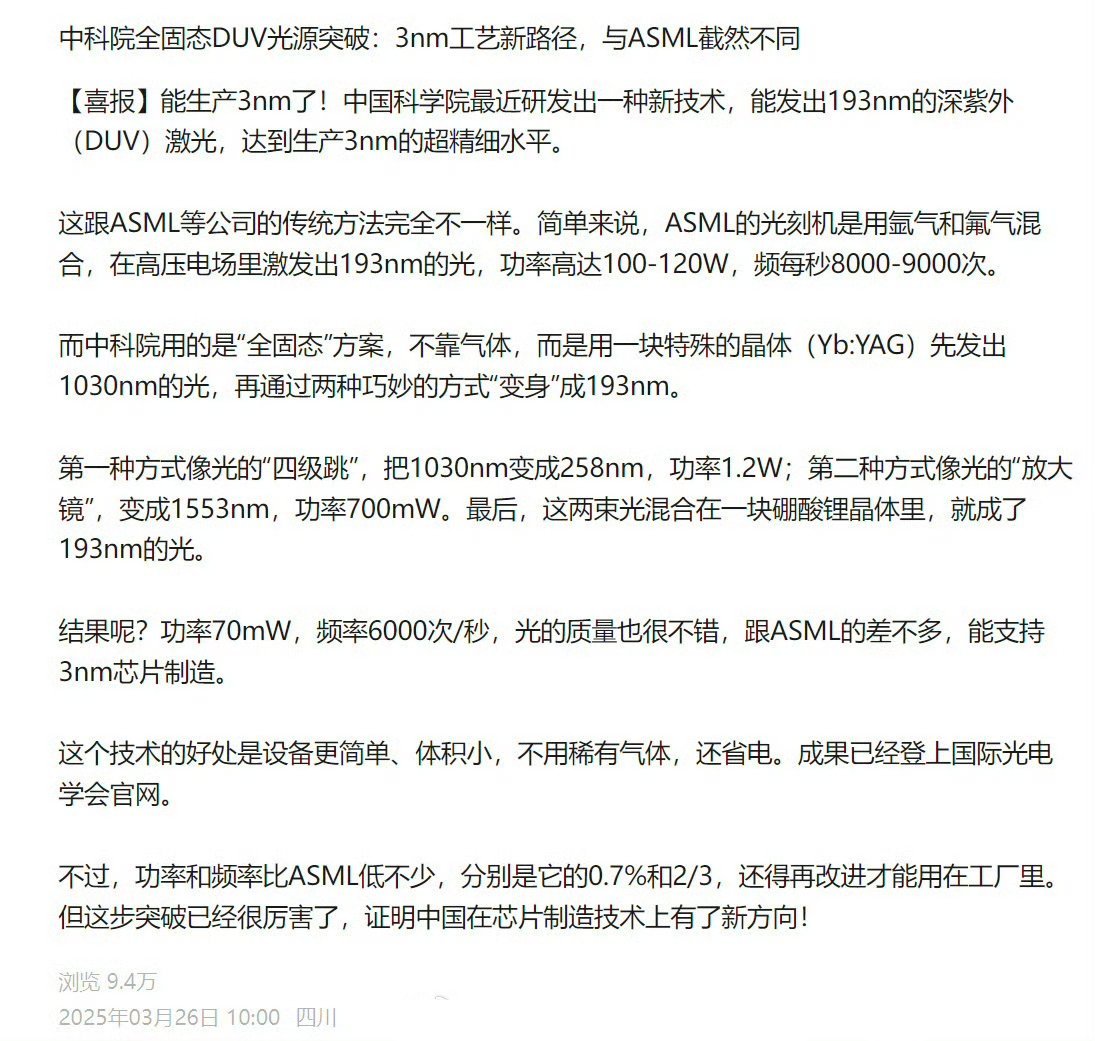 TSMC has been cognizant of these developments for several months, with senior leadership consistently warning about the risks to our competitiveness in mature nodes. The advancements made by Beijing in EUV light generation are particularly noteworthy. The DeepSeek moment in lithography that I previously alluded to may be approaching more rapidly than many anticipate.