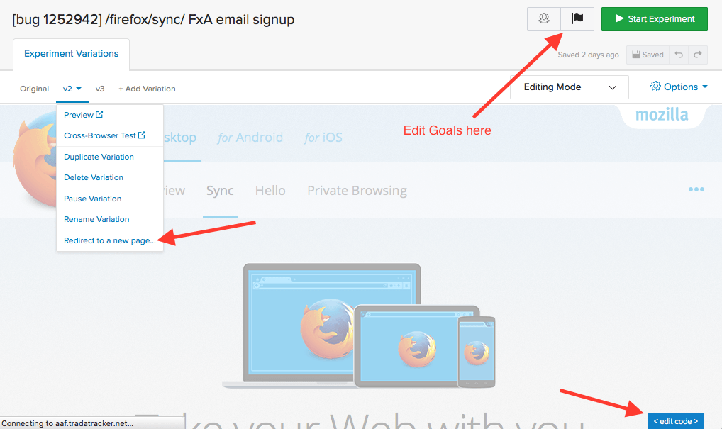 Choose the experiment from the list on the left to see the following details in the right pane.