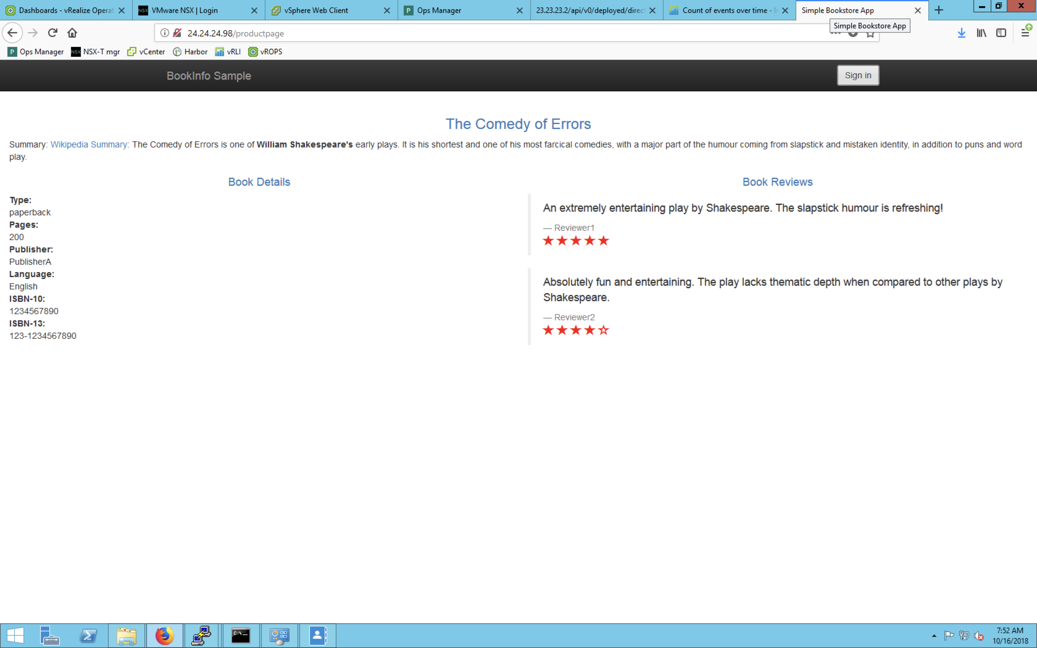 The Bookinfo App is a standard testing application to verify a successful deployment.