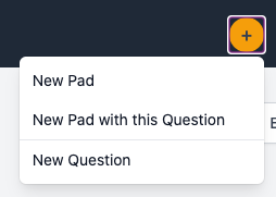 To create a question, click on the orange action button at the top-right of the screen, and click New Question