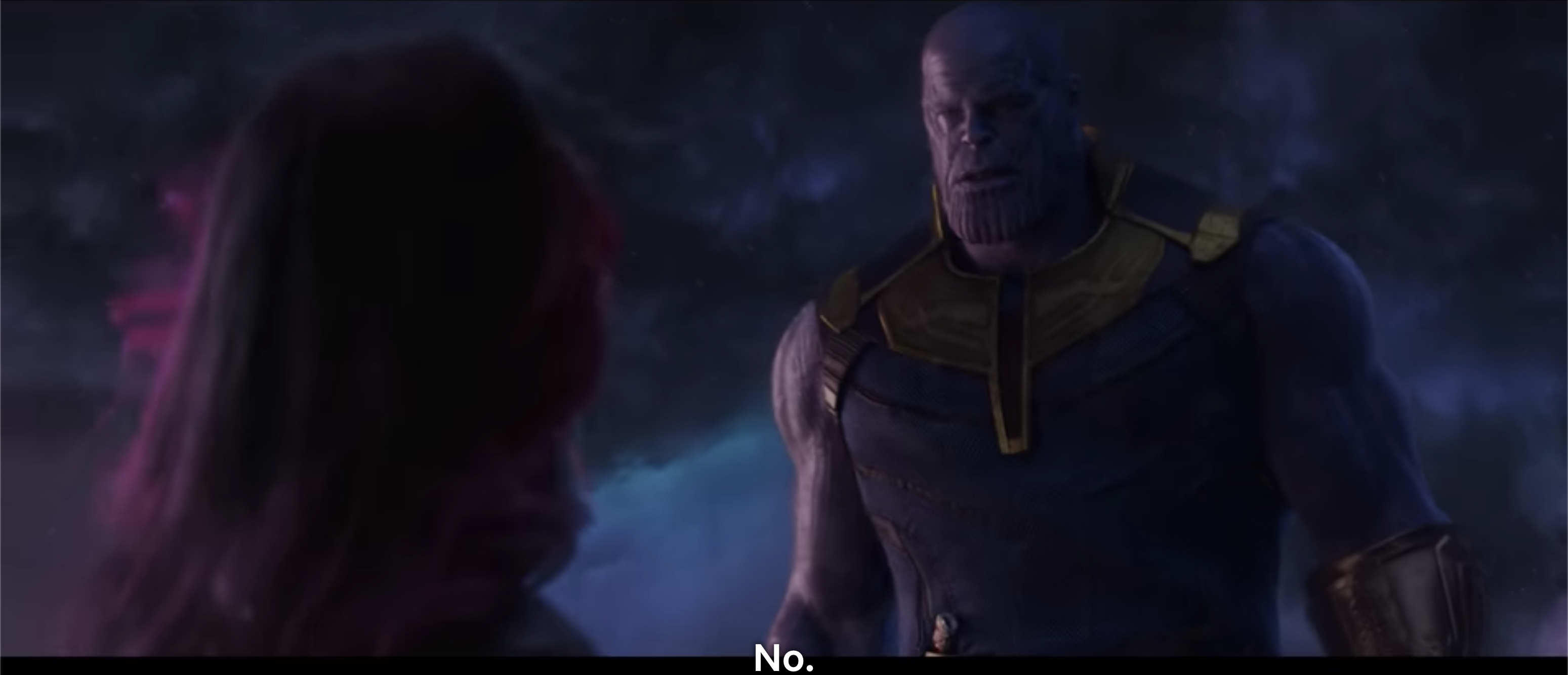 注意此刻的灭霸说 No 的语气,绝对不是想去否定些什么,而像是一种安慰。充满爱意的「No」,如果他是其它角色相信后面的台词都出自动出现在我们脑子里「No, my litter gril, i love you more than i can say…」