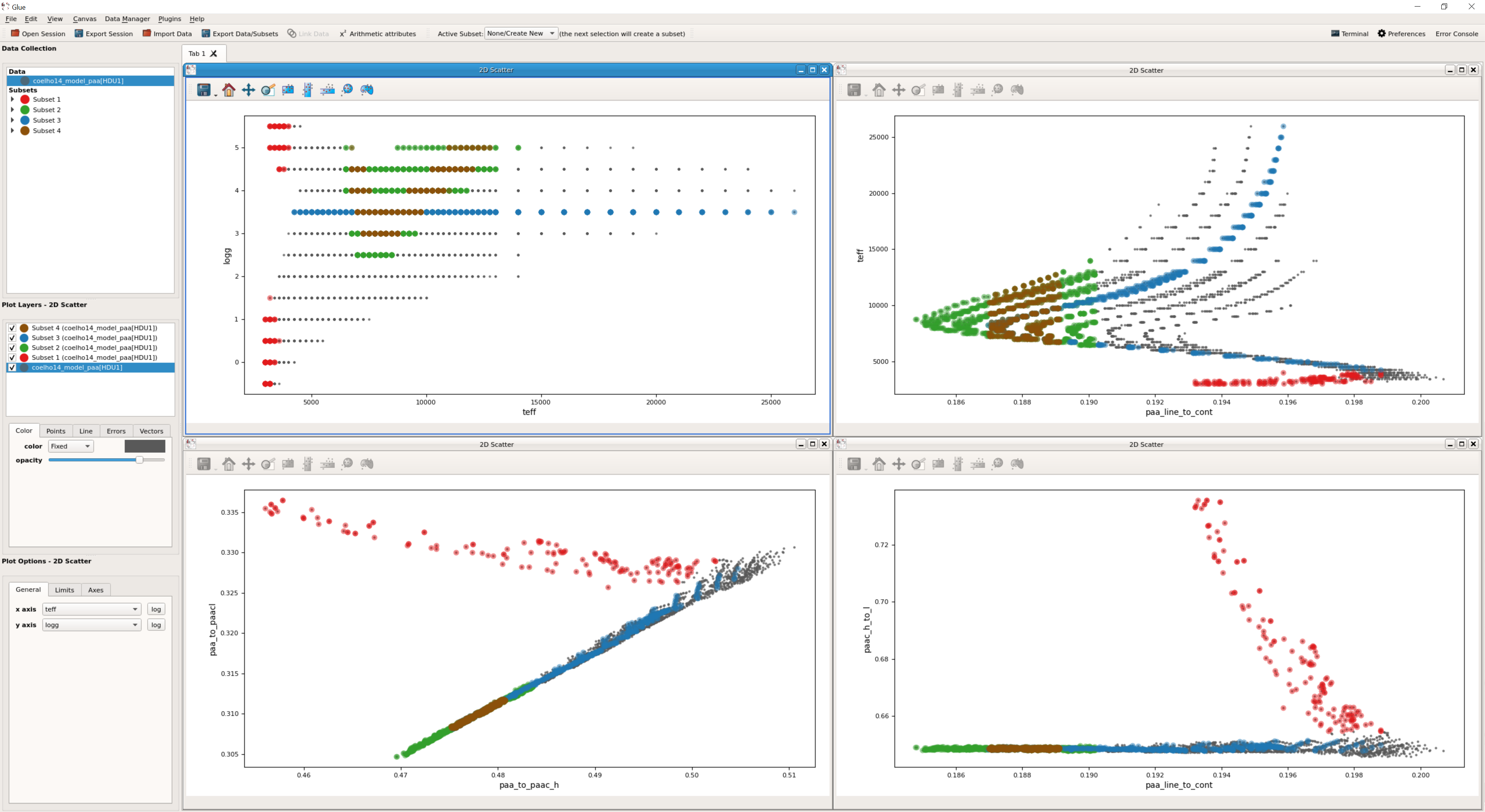 glue view of the table, showing some color selections and what they get us in teff, logg space