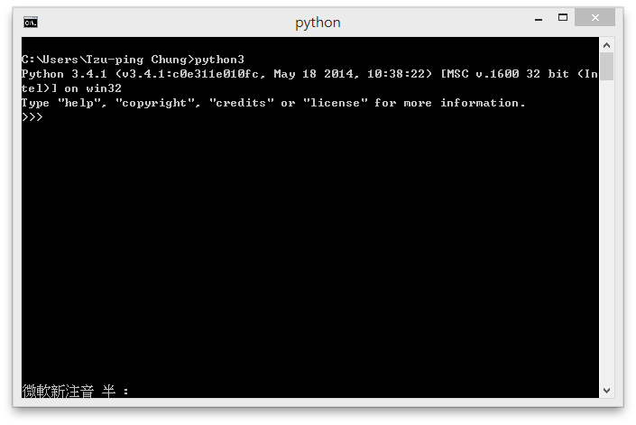 雙擊打開它,試著在 prompt 後面輸入 python3。如果視窗內出現以下的畫面,就代表安裝成功: