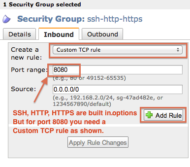 Go to the EC2 Dashboard to set up a new security group. Apply the new security group to an existing instance. Instances > select your instance > Actions > Change Security Group > select the new security group
