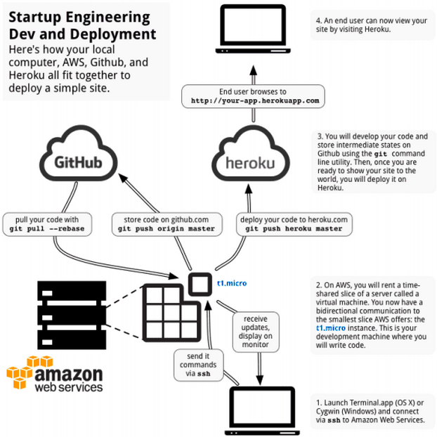Set up an EC2 instance which allows HTTP connections on ports 80 and 8080. This will allow you to debug your webpages while previewing in a browser, rather than copying it locally or pushing to Heroku.