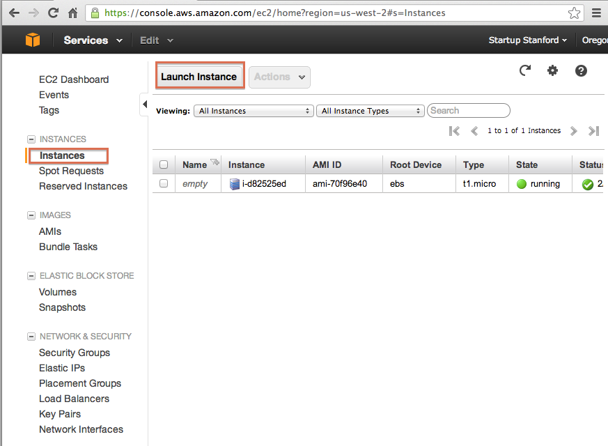 Create an EC2 instance with the quick launch wizard