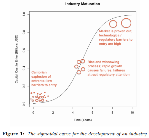The initial pioneers in these startup eras thus had time to get underway before competitors and regulations alike started presenting barriers to entry.