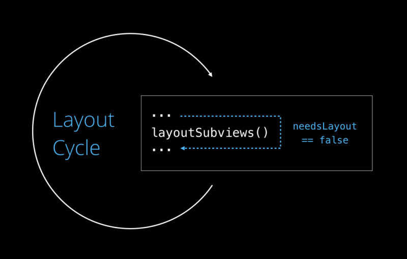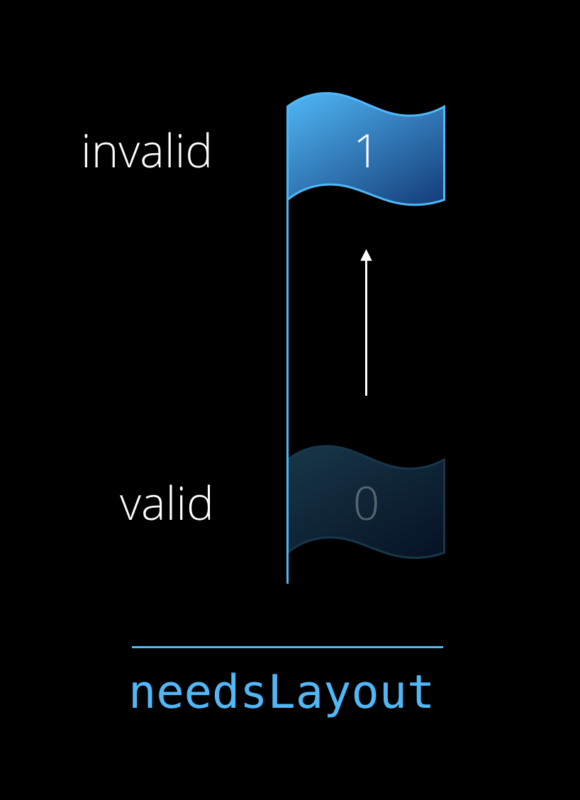 All these steps would require a recomputation of your layout even though you’re only interested in the final result. For that reason, UIKit does not immediately trigger a new layout pass when something within your changes because that would be inefficient. Instead, your layout is only invalidated. This happens whenever