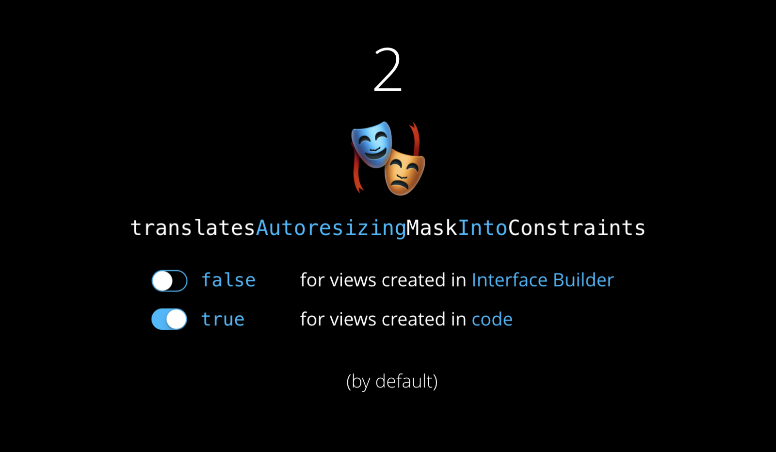translatesAutoresizingMaskIntoConstraintsThe name of this property is very precise. Unfortunately, it’s too precise for developers who don’t know anything about the traditional stuff and so many people just don’t really have a clue what it does. Here’s the answer: