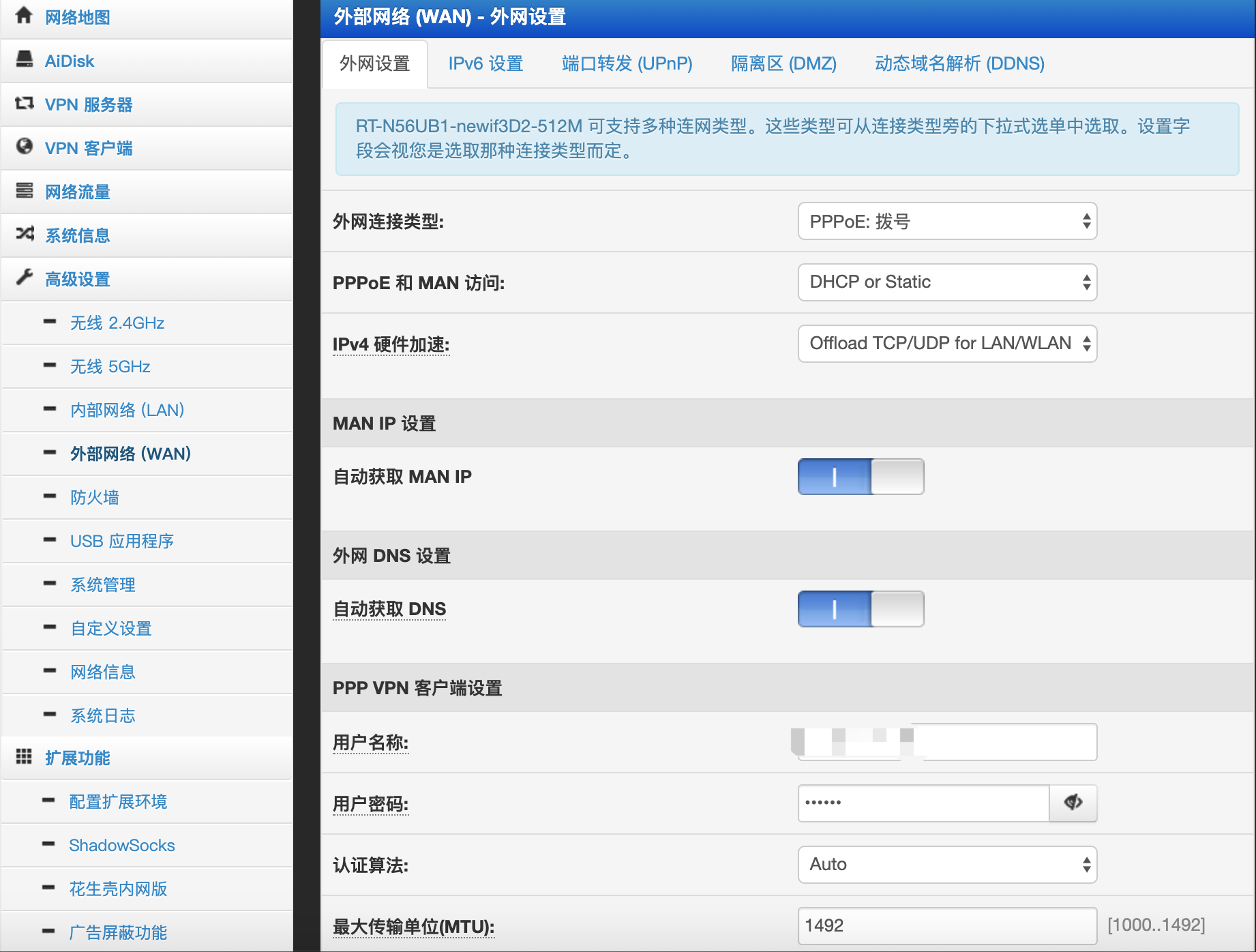 打开 http://192.168.1.1/ 输入上步用户名密码,登录。